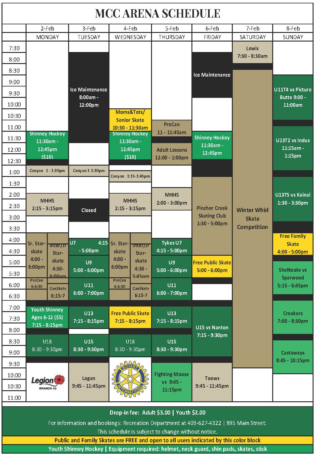 To book ice at the MCC Arena, please contact Recreation at recreation@pinchercreek.ca or 403-627-4322.
