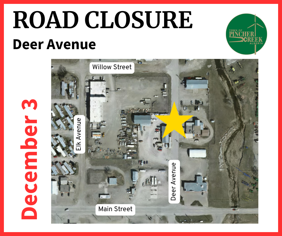 Deer Avenue in front of 1039 Deer Ave will be closed December 3.